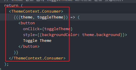 자식 컴포넌트에서 consumer로 감싸고 전달받은 value를 아래와 같이 참조할 수 있다.