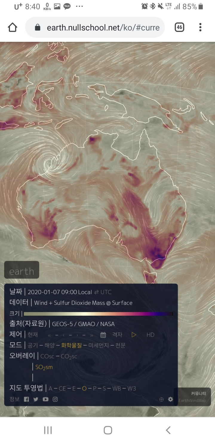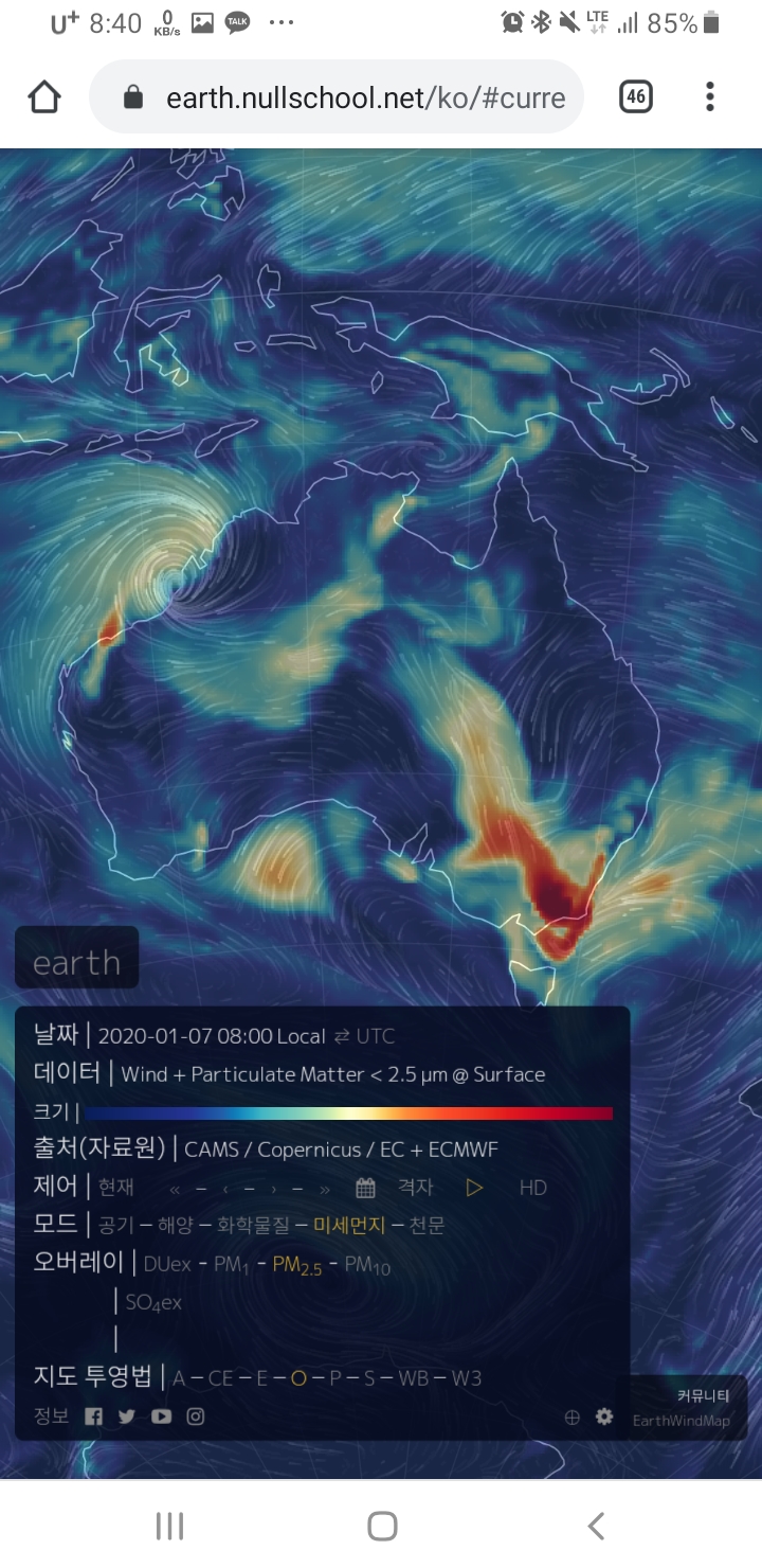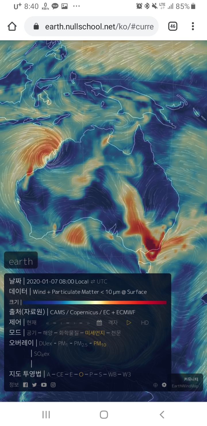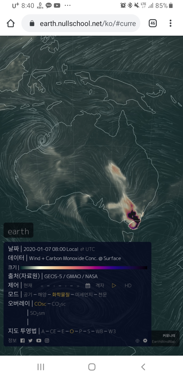 현재 호주의 상황이 끔찍한 혼돈과 파괴, 충격과 공포인것은 사실이나, 실제 실시간 지구 보는 사이트로 본 호주 위성사진은 아래와 같다.